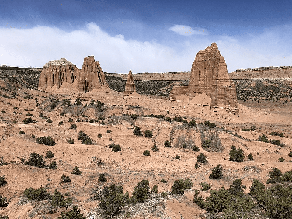 Deep within Capitol Reef National Park, Cathedral Valley feels more like a dream than a destination. Massive clay and sandstone monoliths tower above a sweeping desert plain, shaped by millions of years of wind and flood. Getting there requires patience and a high-clearance vehicle, but that’s part of its magic.