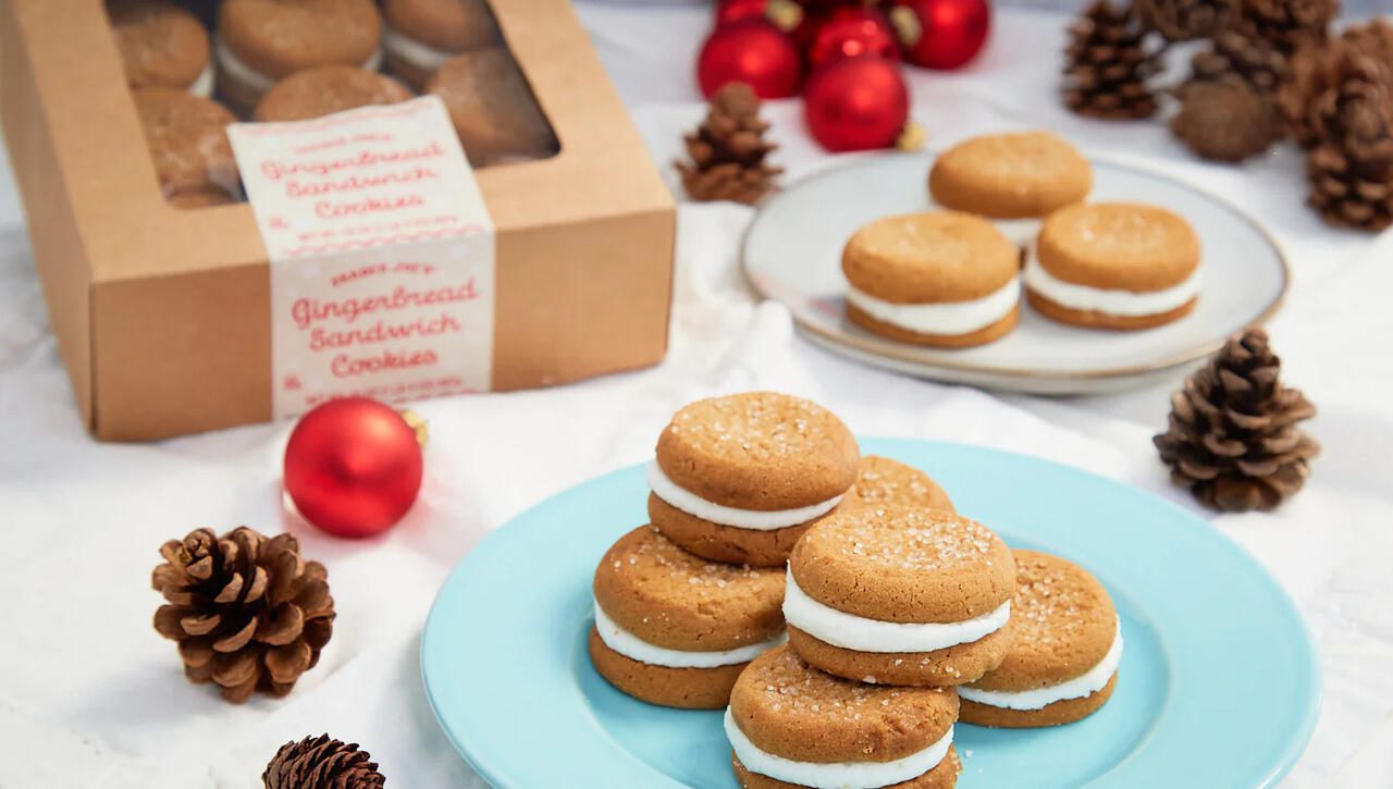 These soft gingerbread cookies feel like something you’d get from an old-school bakery, not a grocery aisle. The spices come through warm and steady ginger, cinnamon, a little clove, without tipping into harsh territory. The creamy center adds just enough sweetness to round everything out, so the whole thing feels balanced instead of sugary. They’re great for holiday dessert boards, afternoon tea, or late-night nibbling when you want something festive but not fussy. If you like baking, you can even crumble a couple into a parfait or layer them into an easy trifle.