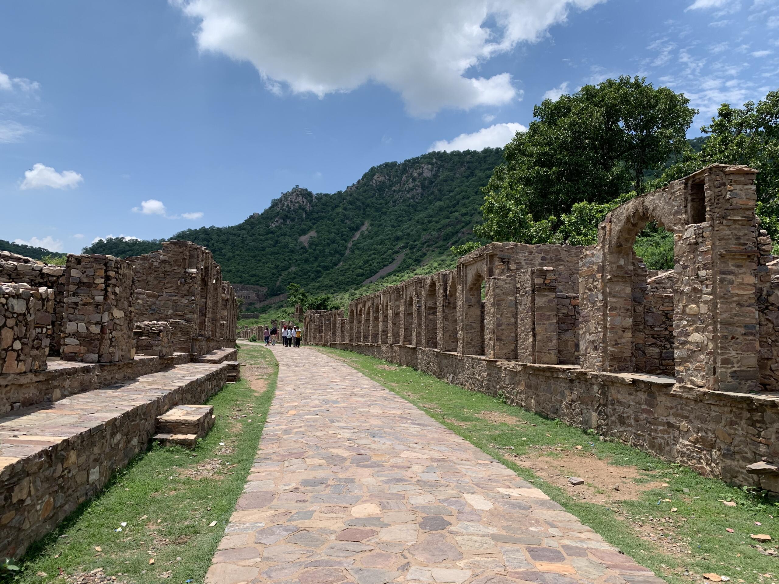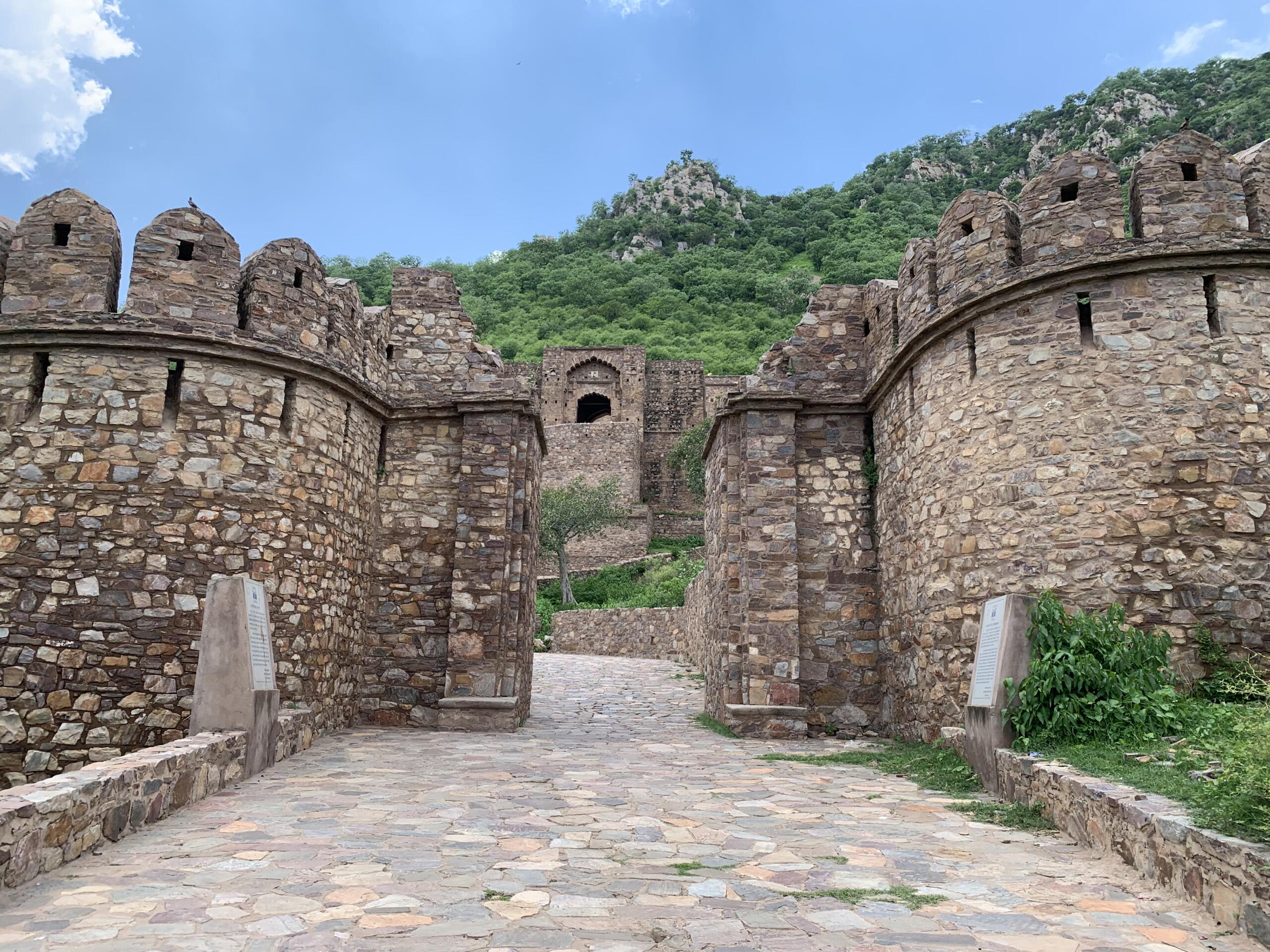 About 53 miles east of Jaipur in Rajasthan, India, where the Aravalli Hills give way to the dry plains of northern India, the ruins of a 16th-century fortress complex sprawl across approximately 100 acres at the base of a mountainside. By any architectural measure, it’s a major Rajput-era heritage site.